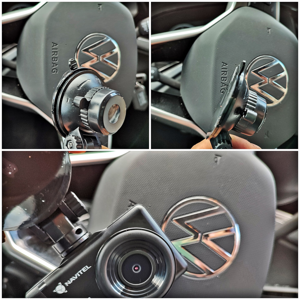 Наверное, лучше вот так. Креплению точно не помешают, а обзор (при расположении регистратора в его автомобиле) не закроют