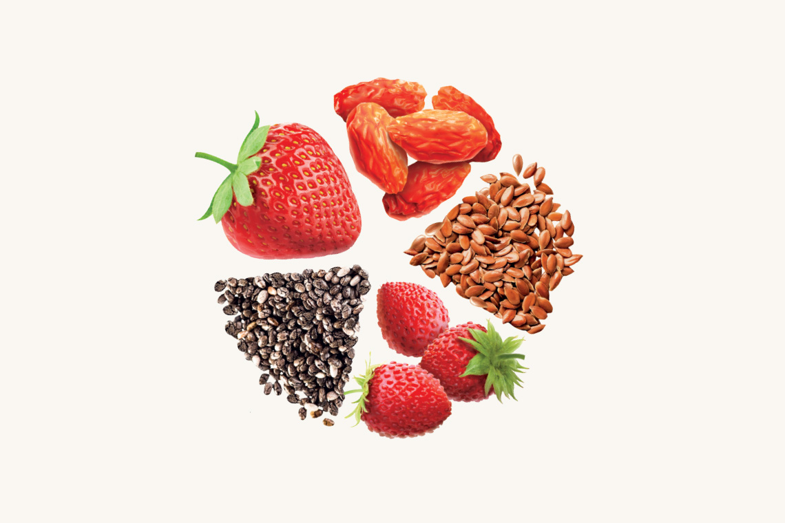Ягоды годжи Омега 6,9, бета-каротин, витамин С Для иммунитета, слизистых, кожи Шиповник, облепиха, барбарис, клюква, брусника, рябина
